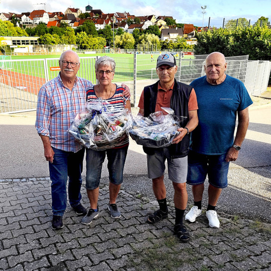 Peter Bechtler, Volker Wissing und Siegfried Lenz überbrachten dem Jubilar und langjährigen Mitglied ein Geschenkkorb mit den besten Glückwünschen der Sachsenheimer Stockschützen.