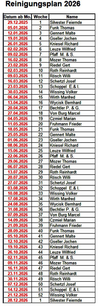 Reinigungsplan 2025